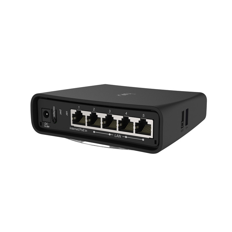 RBD52G-5HacD2HnD-TC با نام تجاری hAP ac² یک دستگاه اکسس پوینت روتر با خروجی ها و امکانات بسیار متنوع و کار آمد از محصولات کمپانی میکروتیک سری hAP می باشد که ایده آل برای کار در شبکه های متوسط خانگی و اداری می باشد . با وجود این روتر بی سیم می توانید استفاده از WiFi را برای کاربران در فرکانس 2.4 و 5 گیگاهرتز به صورت همزمان در محیط های داخلی فراهم سازید و همچنین به راحتی یک شبکه کابلی با اکثر امکانات را راه اندازی نمائید . با توجه به پشتیبانی از قابلیت عملکرد همزمان در دو فرکانس مستقل , این دستگاه می تواند تداخل فرکانسی موجود در هر محیطی را به صورت کامل حل نماید . شما همزمان می توانید از فرکانس 2.4 گیگاهرتز برای پوشش بی سیم همه دستگاه های تلفن همراه خانگی و از فرکانس 5 گیگاهرتز برای کارهایی که نسبت به از بین رفتن بسته ها حساس هستند مانند پخش فیلم های با کیفیت بالا , تلفن های VoIP و یا هر چه شما صلاح میدانید استفاده نمائید. این دستگاه از لحاظ سخت افزاری شامل 5 عدد پورت اترنت با پشتیبانی از سرعت 10 و 100 و 1000 مگابیت بر ثانیه , 1 عدد پورت USB برای اتصال مودم های 3G/4G ویا ذخیره سازی بیشتر , پردازنده 4 هسته ایی مدل IPQ-4018 معماری ARM 32bit با فرکانس 716 مگاهرتز برای هر هسته , مقدار ذخیره گاه حافظه 128 مگابایت (RAM رم) , 16 مگابایت فضای ذخیره سازی Storage با استاندارد FLASH و کلید سخت افزاری برای ریست تنظیمات دستگاه می باشد . همچنین قابل ذکر است شما به راحتی می توانید از طریق قابلیت PoE IN در (پورت 1) نسبت به روشن نمودن دستگاه از طریق سوئیچ PoE ها و یا سایر محصولات با قابلیت PoE OUT با استاندارد و ولتاژ مشابه اقدام نمائید .